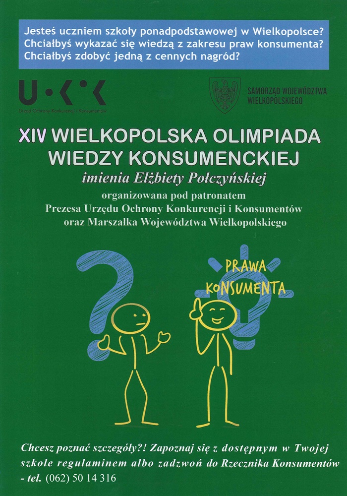 Serdecznie zapraszamy uczniów szkół ponadpodstawowych do udziału w XIV Wielkopolskiej Olimpiadzie Wiedzy Konsumenckiej.
